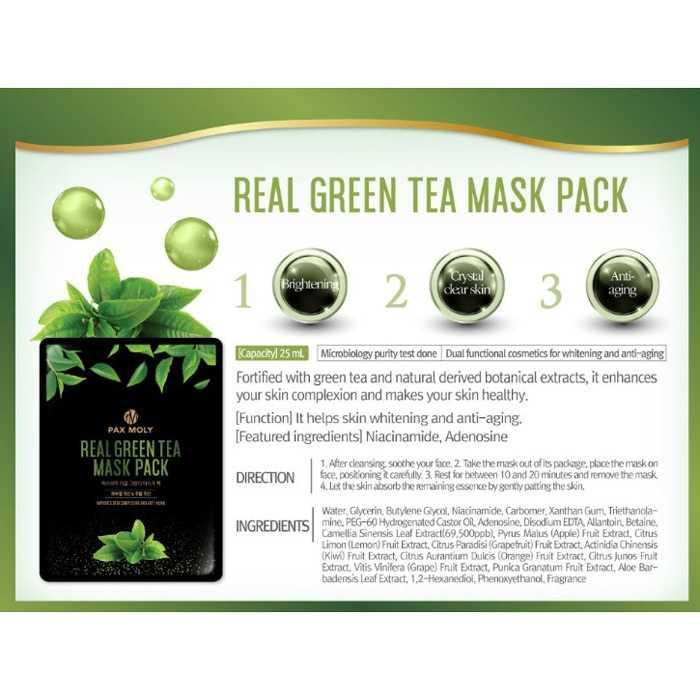 Pax Moly Green Tea Mask, Real Green Tea Sheet Mask, Hydrating Face Mask, Soothing Green Tea Mask, Korean Sheet Mask, Acne Control Mask, Oil Balancing Mask, Refreshing Face Mask, Green Tea Skin Care
